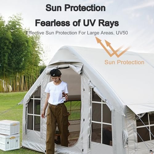 Aufblasbares Campingzelt für 6-8 Personen, 4 Jahreszeiten, Pop-Up-Design, inkl. Luftpumpe, Kaminöffnung, mit Aufbewahrungstasche für Familien