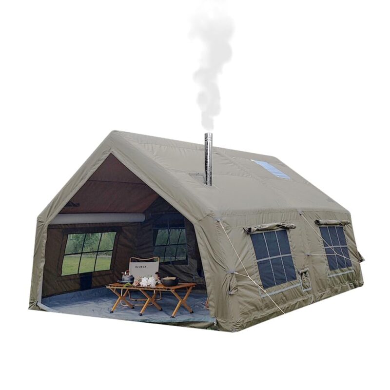 Aufblasbares Zweiraumzelt 4-6 Personen, wasserdicht, Stehhöhe, Luxus, mit Ofenloch, 4,8 x 3,6 x 2,5 m, Oxford Armeegrün Familienzelt