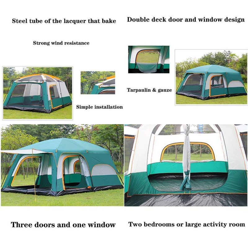 Campingzelt für 8-12 Personen, 2 Schlafzimmer, doppelschichtig, wasserdicht, winddicht, Kuppelzelt mit eingenähter Bodenplane, ideal für Camping