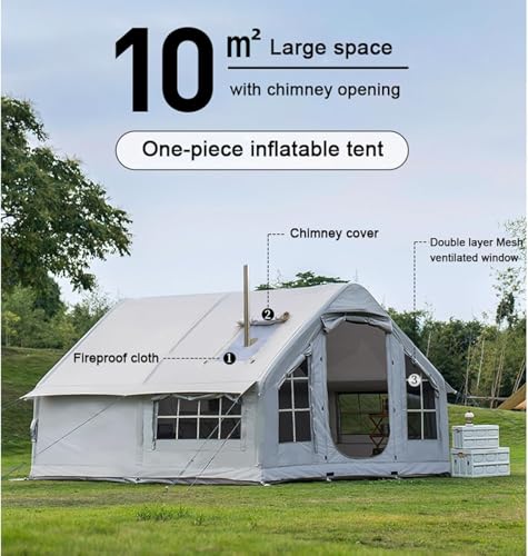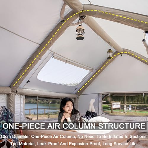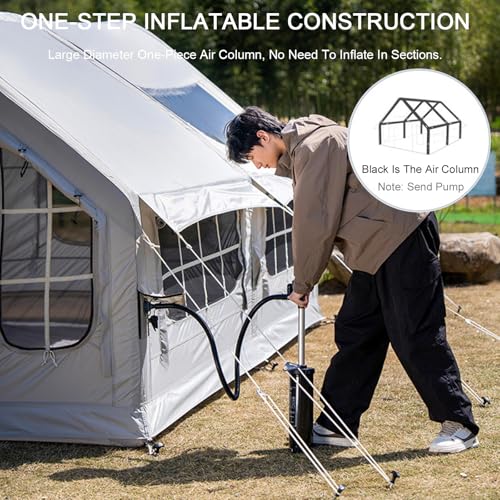 Aufblasbares Campingzelt für 6-8 Personen, 4-Jahreszeiten-Lufthaus inklusive Luftpumpe, Pop-Up-Design mit Aufbewahrungstasche & Kaminöffnung – Perfekt für Familienabenteuer