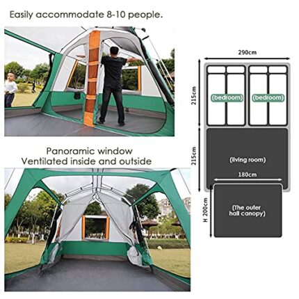 Aufblasbares Zweiraumzelt 4-6 Personen, wasserdicht, Stehhöhe, Luxus, mit Ofenloch, 4,8 x 3,6 x 2,5 m, Oxford Armeegrün Familienzelt
