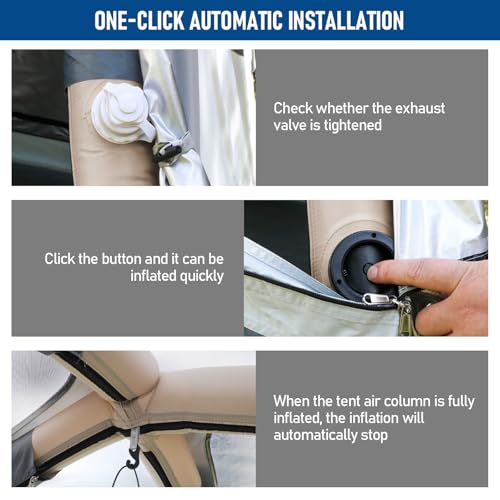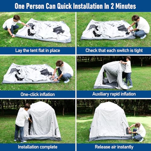 - 【Innovative Double-Layer Air Columns】Erleben Sie überlegene Stabilität und Haltbarkeit mit dem einzigartigen Luftsäulen-Design des Zelts. Im Gegensatz zu traditionellen Stangenzelten verfügt es über eine doppellagige Konstruktion aus 210D Oxford-Gewebe, das mit TPU-Luftsäulen verstärkt ist. Dieses innovative Design bietet eine einfachere Einrichtung, verbesserte Flexibilität und überlegene Schadensbeständigkeit.