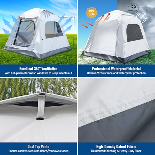 - 【Allwetterschutz】 Langlebig: Hergestellt aus hochwertigem 210D silberbeschichtetem Oxford-Gewebe, bietet das Zelt außergewöhnliche Wetterbeständigkeit. Mit einer beeindruckenden Wasserdichtigkeit von PU3000+ und effektivem UV-Schutz ist es ein zuverlässiger Unterschlupf für Outdoor-Abenteuer.